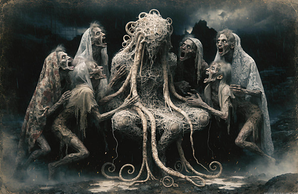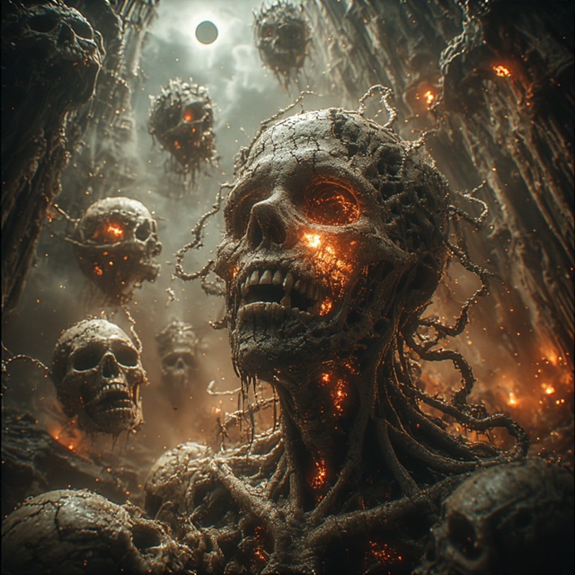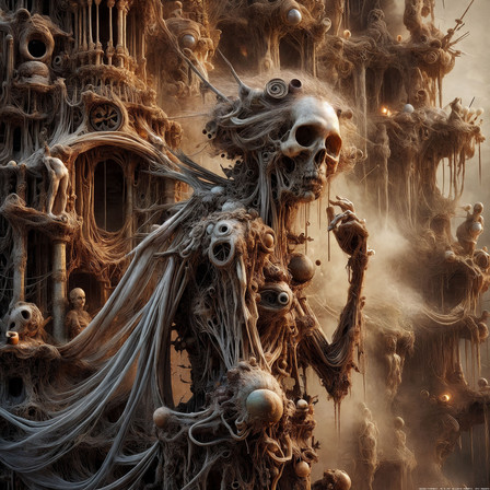 #fantasyart #horror #creepy #undead #surreal #gothic #macabre #skull #spooky #zombie #apocalyptic #ai #architecture #candle #collapsing #contemplation #deformity #dust #fog #ghost #light #monster #ruins #shadow #skeleton #smoke #dall_e3