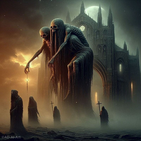 #horror #conceptart #apocalyptic #fantasyart #surreal #gothic #magic #ai #architecture #candle #collapsing #contemplation #deformity #dust #fog #ghost #light #monster #ruins #shadow #skeleton #smoke #undead #zombie #dall_e3