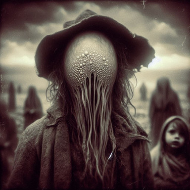 #horror #creepy #digitalart #surreal #macabre #characterdesign #portrait #fantasyart #ai #conceptart #death #imagery #mutation #photography #spooky #vintage