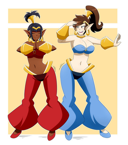 What better way to dress up for spooky month than be inspired by your associates? Yun (the Monk) and Azar (the djinn dancer) didn't take each other's outfits (they'd never fit), but instead made costumes based on what the other is.