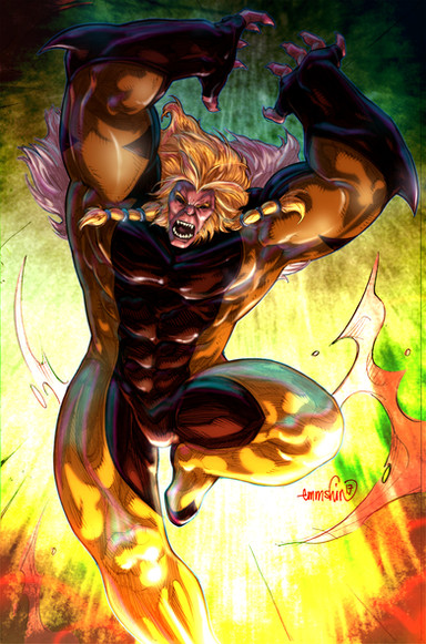 Wow! Very intense! Awesome coloring too--I don't know why, but I have trouble finding Sabertooth work, Wolverine always gets all the attention, heheh--very incredible job though!