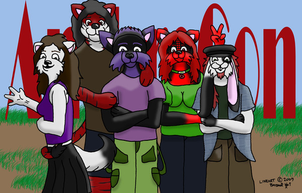 Ryan: my fursona! Top left hand corner. Ryan likes to be different. He wears really loud, annoying shirts all the time and will do unusual things to get attention. Even for a cat, he's very flexible and energetic and loves to show off, and he's genophobic...very, extremily, violently anti-porn.