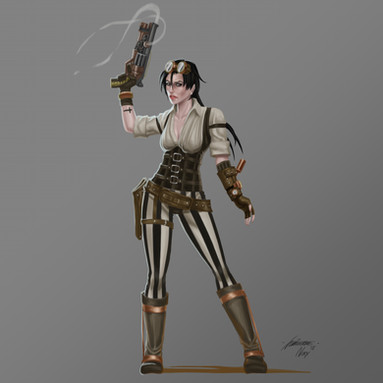 Some design work for a canceled video game project.A steampunk theme. Check out the amazing Zbrush sculpt of this figure by Jason Smith--> [link]