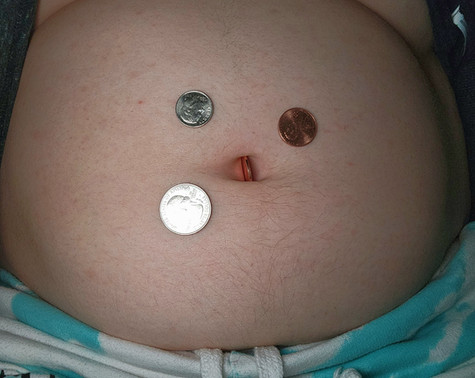 I also love the way it's partly hidden by the navel-rim. It's also a perfect fit, just as though your belly button was a coin slot! :lol; But like I always say, 'In for a penny, in for a pound... er, sorry... dollar!'