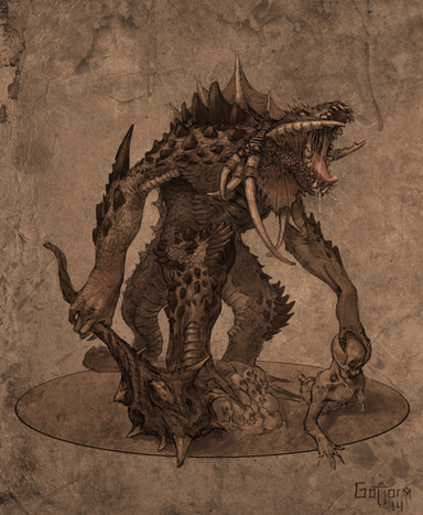 after laying down the base linework and some kind of values i overlayed the picture of the skin pattern of a lizard, cut it a bit and then repeated it with the clone stamp too.I think i then did the highlights with a color dodge layer-i say i think because i honestly forgot i worked on this