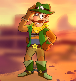 I hope nobody minds my redesigns of the brothers; I wanted to give them more of a 1920's feel. I wanted to give Luigi a lump hammer in contrast to Mario's sledgehammer, but sai crashed before I could save the revised sketch where he had it and I completely forgot. He also has a chipped tooth, though I don't think it looks very good now that I think about it @ 3 @;;