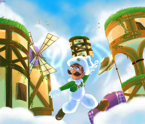 This is based on the sidestory Luigi has during Paper Mario: The Thousand-Year Door, where Luigi has his own adventure in the Waffle Kingdom. I just imagine him being super excited about it. We never did see the Waffle Kingdom, but I imagine it has chocolate brick roads, waffle bushes and cotton candy clouds.