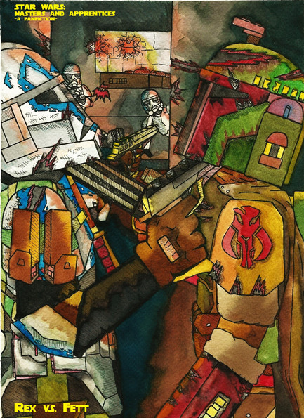 A time warp has grievous and boba working together to attack a group of jedi. The jedi are on a mission to destroy vader and resolve the time warp. Wimpy Anikin is stuck in the middle of it all when all he wants is to find and rescue Padme. No one knows where she is! He's made a deal with Boba to help fight with the promise of rescuing Padme. The guy in blue, 53, is Jango's loyal arc trooper and secret admirer of Padme. 53 is searching for Jango who is also Padme's kidnapper! Crazy fun...
