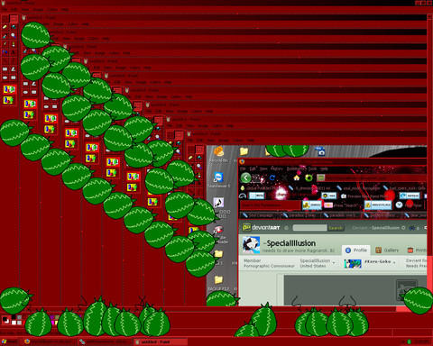 Wallpaper by ~boobookittyfuckJust felt it was time to upload a pic of my desktop, seeing as it has actually been like this since BBKF uploaded this image.
