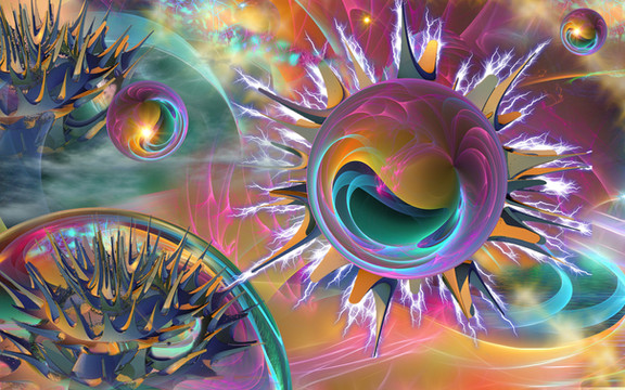 made with Ultrafractal 4.03 - Photoshop 7Here's a neat fractal shape I came up with using the "SpiraBrot" formula in as.ufm and some of Toby's fun Doodads II. Kinda weird shapes like cell division or egg fertilization. Or, another way I looked at it almost made me think it was saying its name was "Javastones" because it looks also maybe like coffee beans....or it could have been it was early morning and the coffee machine wasn't done yet - lol.