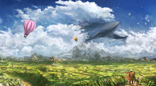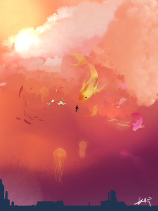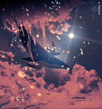 Is this a whale flying into the clouds? (I'm just asking because I wasn't sure if the whale was in the clouds or in the sea, because I think this piece is absolutely beautiful.)
