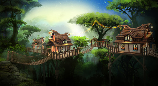 This kind of reminds me of the Treetop levels from Donkey Kong Country. Quite amazing work <3