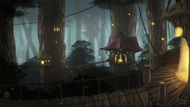 This is a beautiful piece! I love the light effects from all the lanterns. The forest is pretty as well!