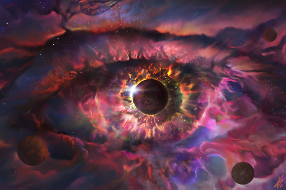 Wow, that looking amazing. Is it me or did you purposely make the pupil look like a planet? Love the lighting effect though