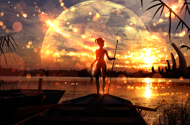 Wow! I love the glow in the atmosphere, the colors, and the overall composition of this piece. Great work!