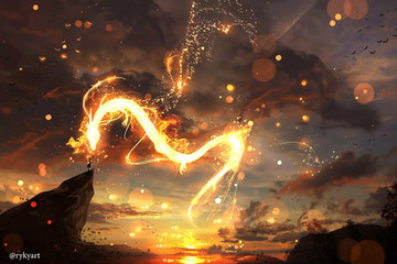 Lovely silhouette ancient lighting effects make this absolutely stunning. Love the feathery effects around the dragon also.