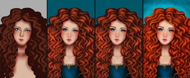 Whoa, how'd you get step 8 to step 9 to make her hair vivid?Β