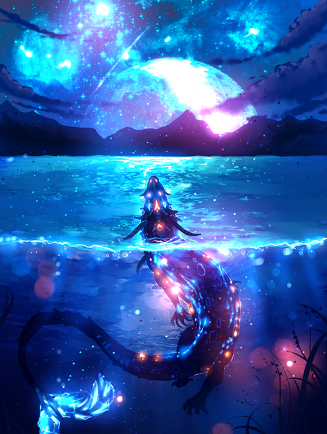 Holy, epically wondrous! This Phenomenal Lochness-like Monster is stunning and The Ship looks incredible. The designs, expressions, poses, ocean, water, waves, sails, mast, stern, flags, deck, symbols, eel-like fish, fins, tails, whiskers, tentacles, eyes, underwater view, surface, bubbles, seaweed, plant life, interactions, sky, clouds, moon, sunlight, rays, shadows, wind, sparkles, particles, contrast, flow, effects, movement, perspective, realisticness, atmosphere, hues, textures, concept, composition, uniqueness, colors, lighting, style, and other details are also sensational. Amazingly Radical work!