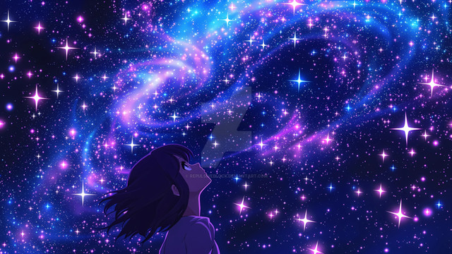 The galaxy is so beautifully drawn! Very gorgeous colours.