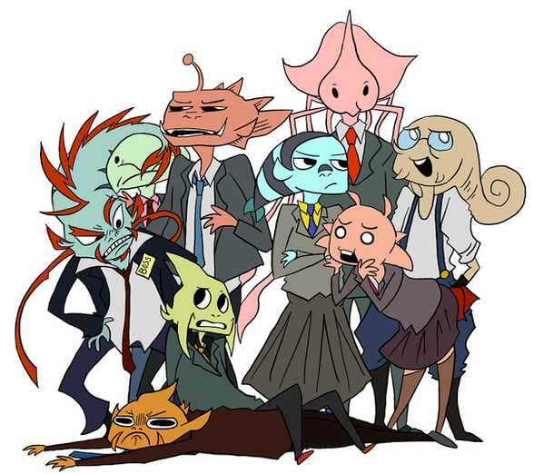 work in progress- my office deep sea fish people guysthe style's supposed to be like scientific drawings which translate in my head to LOT'S OF PATTERNS AND DOTS OH GOD