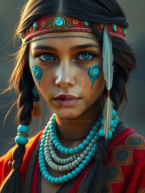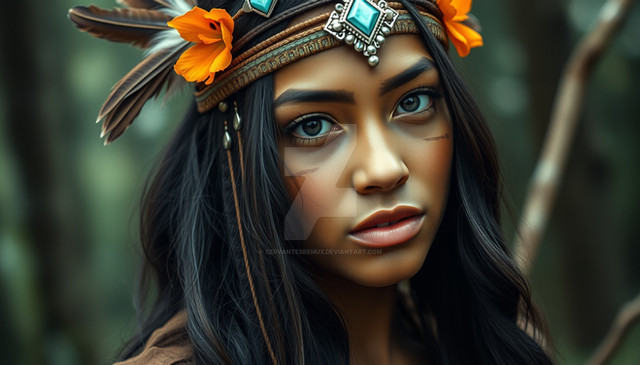 #characterdesign #closeup #creation #digitalart #digitalpainting #facialtattoos #feathers #firstnations #indiangirl #indigenous #nativeamerican #portraitphotography #redbrownhair #tribalmarkings #nativeculture #emeraldgreeneyes #nativeheritage #ethnicbeauty #strikingeyes #aiart #detailedface #aianimation #luminarneo #midjourney #aiartworks #midjourneyai #midjourneyart #naturesurroundings