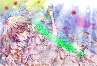 Thật ra đây là một bức tranh không có background. Mục đích là để nền toàn trắng, line art nhạt, và mở ra không gian phía sau. Nó tuyệt đối trống và mỏng manh, có lẽ Crystal rain trong cảm nhận của Ryo có cái màu như vậy... để vài cái lá sẽ làm cho cảnh vật tự nhiên hơn thật ^^, nhưng mà ... không biết sao thấy ko thích lắm :">