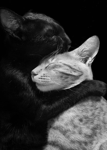 This pic is really cute at the first sight, but as a cat owner, judging by the way the ears are down I can say they're fighting. It's still cute anyway, I love seeing cat fighting (as long as its not a real fight, just a play).Β