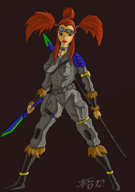 Yay, she gets her flying friend! I likes it-a very much. :] I also really like her expression--it's what caught my attention before anything else. Is your sister a punk too, by any chance? hehe