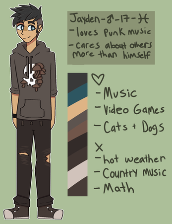i remade his ref and made him,,,a not adlet??? but he still lives in the adlet universe i think; i want him to be friends w/ garret soName: Jordan Anderson