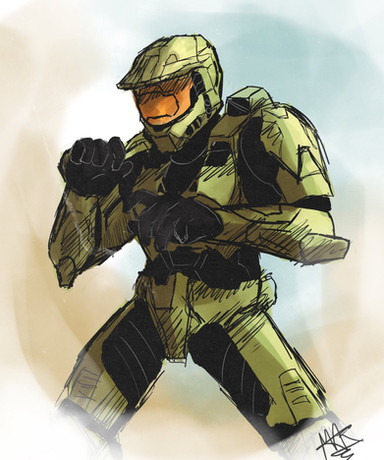 Love your sketchy style. And the blue background lighting. Classic Halo art.