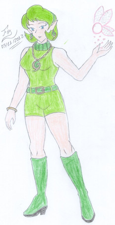 Crystal, a character created by , and drawn by me, inked and colored in Photoshop Elements 4.0, Background edited from an image captured by the Kitahara Astronomical Observatory.Kinda looks like a female version of Link, huh? I dunno if that's what she was going for...on the original the eyes look very similar to the way Link's eyes looked like in Soul Calibur 2... [link]