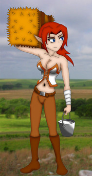 I had a bit of fun with the tatoos, I implemented a new technique similar to how I shaded the swords on the picture "Mayra", only instead of just shading I painted, and then used the burn tool to add shadows in the necessary places. The back part of the skirt has the best fabric-fold look I've ever been able to pull off...