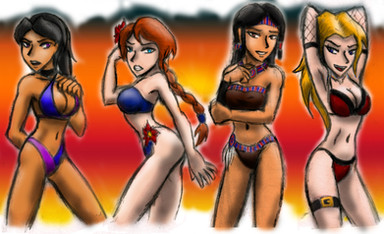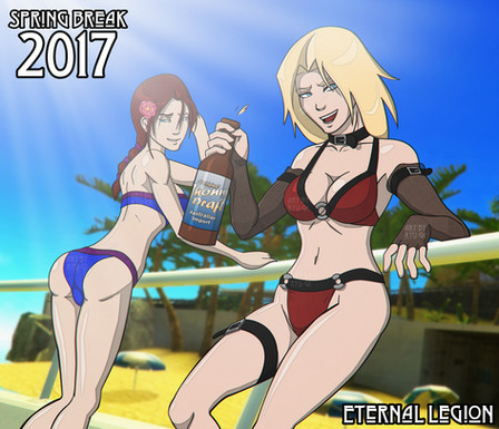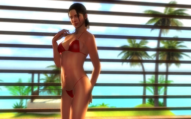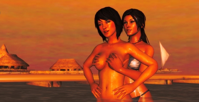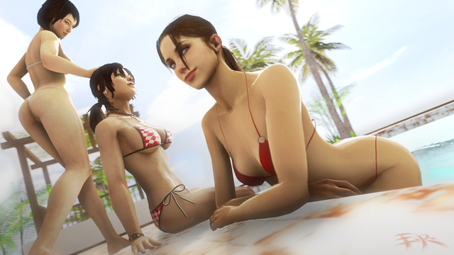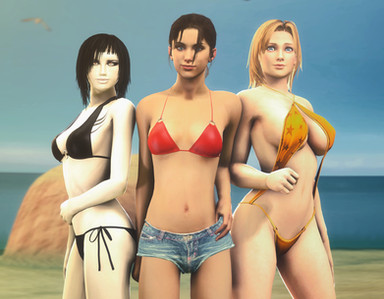 This is a gift to for winning 3rd place in my recent contest. He originally requested Zelda and Samus in bikinis on the beach, but I was having a little trouble getting the models to work correctly. So here's two cute Asian girls instead.
