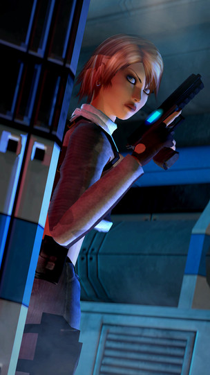 A "Secret Agent" version of Zoey was released as a mod for L4D2 not too long ago, and a Gmod version came out soon afterwards. Wish there was a version that was zipped up a little bit more and didn't have "Combat Heels", but eh. I like this model a lot, though, so I thought I'd do a few Spy-themed shots with her.