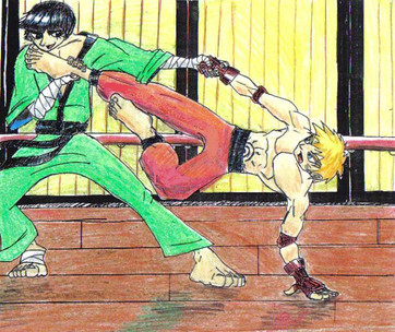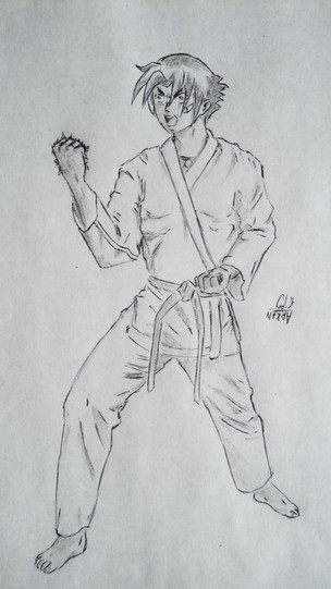 this draw then Street Fighter 4 was coming out, so I thought I do a drawing Ryu doing the Shoryuken, one of my fav moves in the games. I start drawing, but I didn't have any reference pics. So in the end I just did with one of my own character doing like a mock Shoryuken on some random street thug.Related content