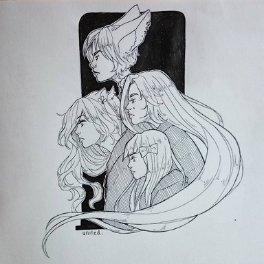 materials: copic multiliners/pigma micron for lineart, paint tool sai and photoshop for colouring