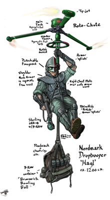 I was, at the least, partly inspired by the covers of the original Baen edition Hammer's Slammers paperback & the more recent Butcher's Bill.