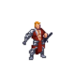 Hello! Just a quickie Pixel submission. So has been playing Bloodstained: Curse of the Moon and she showed it to me. It's very Castlevania-esque and they have quite beautiful sprite work. Very colorful backgrounds and imaginative bosses and all. It's amazing what you can do with 3 or 4 colors! So I thought, why not try and give it a go and make an old-school, 8-bit Ryo? Originally when working on this, he had six colors, but further study showed the main characters had up to 4. So I had to reduce colors, thus why his outfit is brown like his skin, not red and why his gold portions are bone.