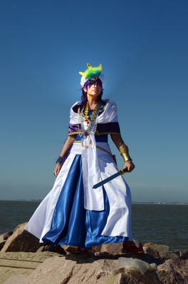 sooooo <3my love for magi goes on X°D i really like young sinbad and i enjoyed cosplaying him very much u3u i made the costume and sword, styled the wig and edited the pic UWU hohoho