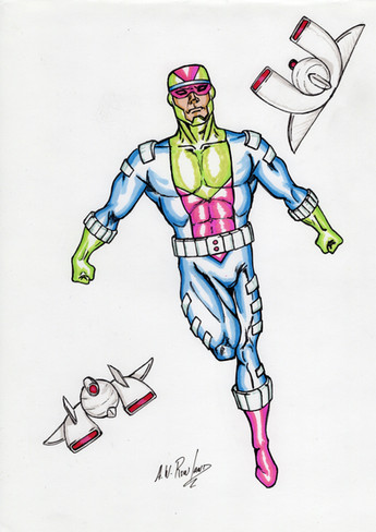 I like how you did his costume. it reminds me of suit that Argo wears from the S-Force and the helmet looks similar at Koji's helmet from Mazinger.
