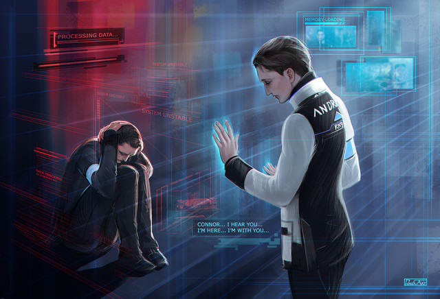 A tribute to Detroit: Become Human I painted a little while ago after watching the playthrough. I'm absolutely weak for A.I. concepts.