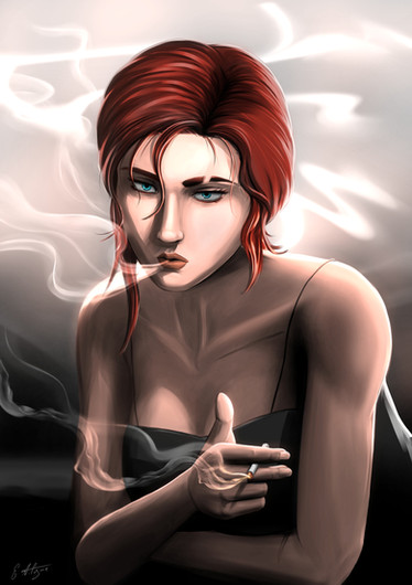 #stylized #cigarette #digitalart #digitalpainting #freckles #girl #portrait #realism #redhair #redhead #smoke #smokescreen #smoking #woman #stylizedrealism