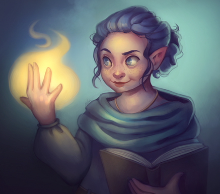Zyrie Faust, a moon elf wizard commission 🧙Her design was so lovely, and I got to add a hat!