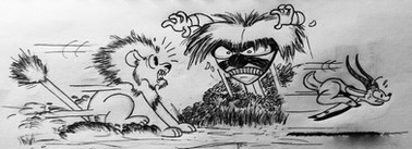 a lion and a gazelle playing in the savanna... although i dont think the gazelle knows the lion is just playing....im super happy with the background because backgrounds are not my strong side and whenever i do one it looks terrible. except this one. this one looks decent.