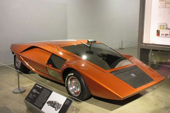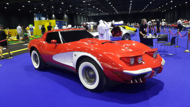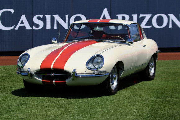A Jaguar E-type that has been highly modified for track use.[edited after upload] And apparently it's an homage to the E-type "shaguer" from austin powers.