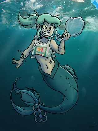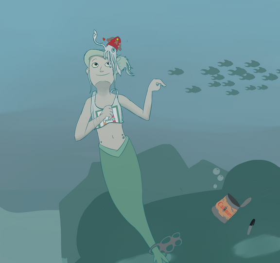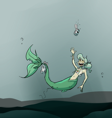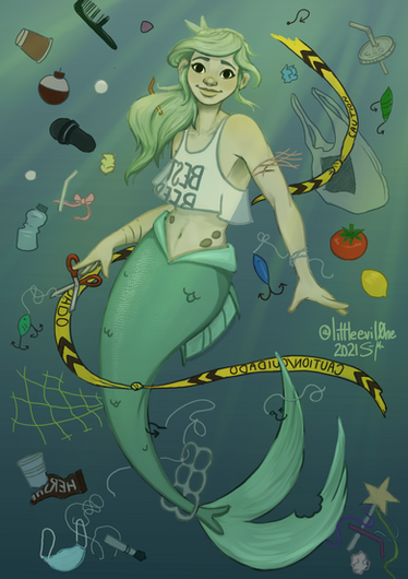 Love this so much ;w; even if it shows some of the worst things people do you took it and made a wonderful art piece of it! You also make a wonderful mermaid just need someone to care for and clean you up just like the oceans. Also leave that poor wormy alone. His day has been bad enough