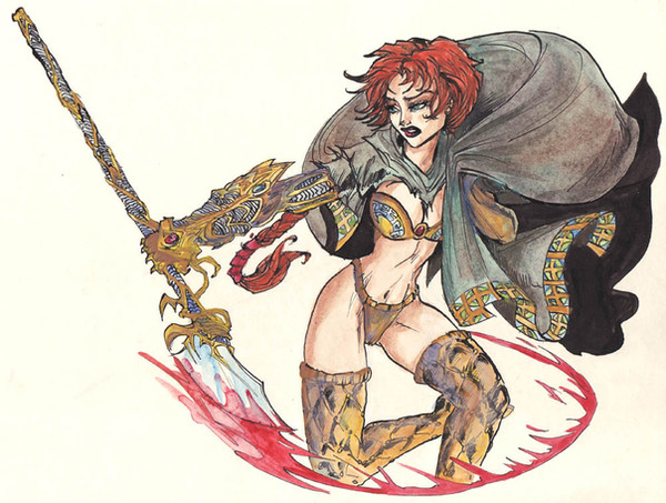 It's a cool character design, but it's just a bit impractical. That little bow doesn't look like it'd pack much of a punch, and the arrows are inconveniently placed. The clothing has been mentioned as well. I realize that this is an older piece, but I just thought I'd say a few things.