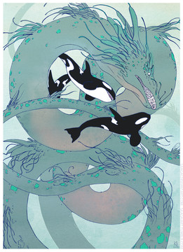 Pigment liners, watercolor, gouache and a few edits in Photoshop Elements.