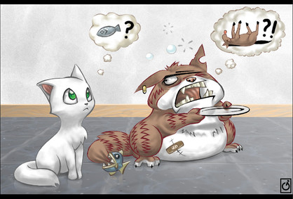 joo, JUOKSE SÄÄLITTÄVÄN TYHMÄN SYÖTTIPYLLYSI EDESTÄ. OON AIKA VARMA ETTÄ KISU PÄÄSEE PAKOON, se on ääliö mutta vikkelä jaloistaan! Ellei se saa ideaa jäädä lagaamaan paikalleen köh... <____>