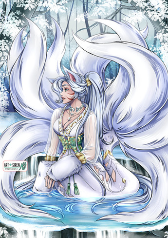 #digital #drawing #fantasy #fantasyart #folklore #fox #foxgirl #goddess #illustration #japan #japanese #japanesemythology #kitsune #kitsunegirl #magic #mythology #photoshop #redhairedgirl #redhead #waterfall #woman #art